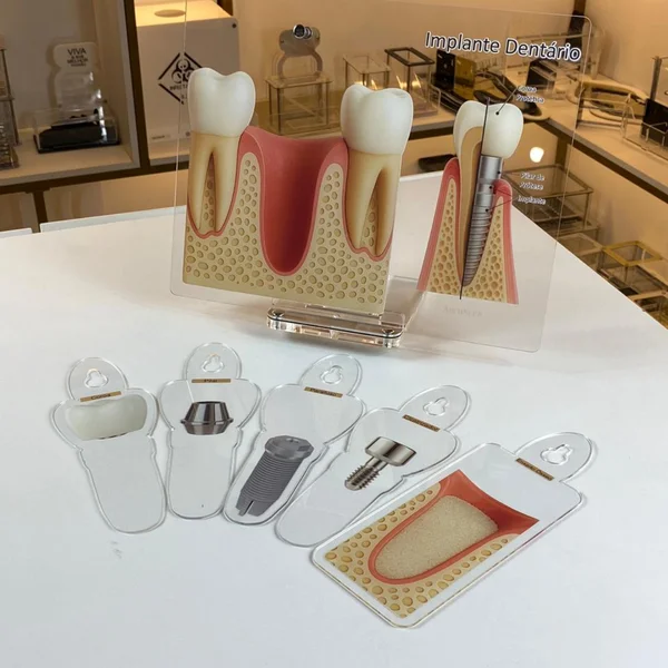 O macromodelo de Implante Dentário é uma ferramenta didática indispensável para clínicas e instituições de ensino que desejam demonstrar de forma clara o processo de reabilitação oral. Ideal para apresentações a pacientes, aulas de implantodontia e treinamentos em odontologia, este modelo alia realismo, clareza e praticidade, tornando o aprendizado mais envolvente e a comunicação profissional muito mais eficaz.